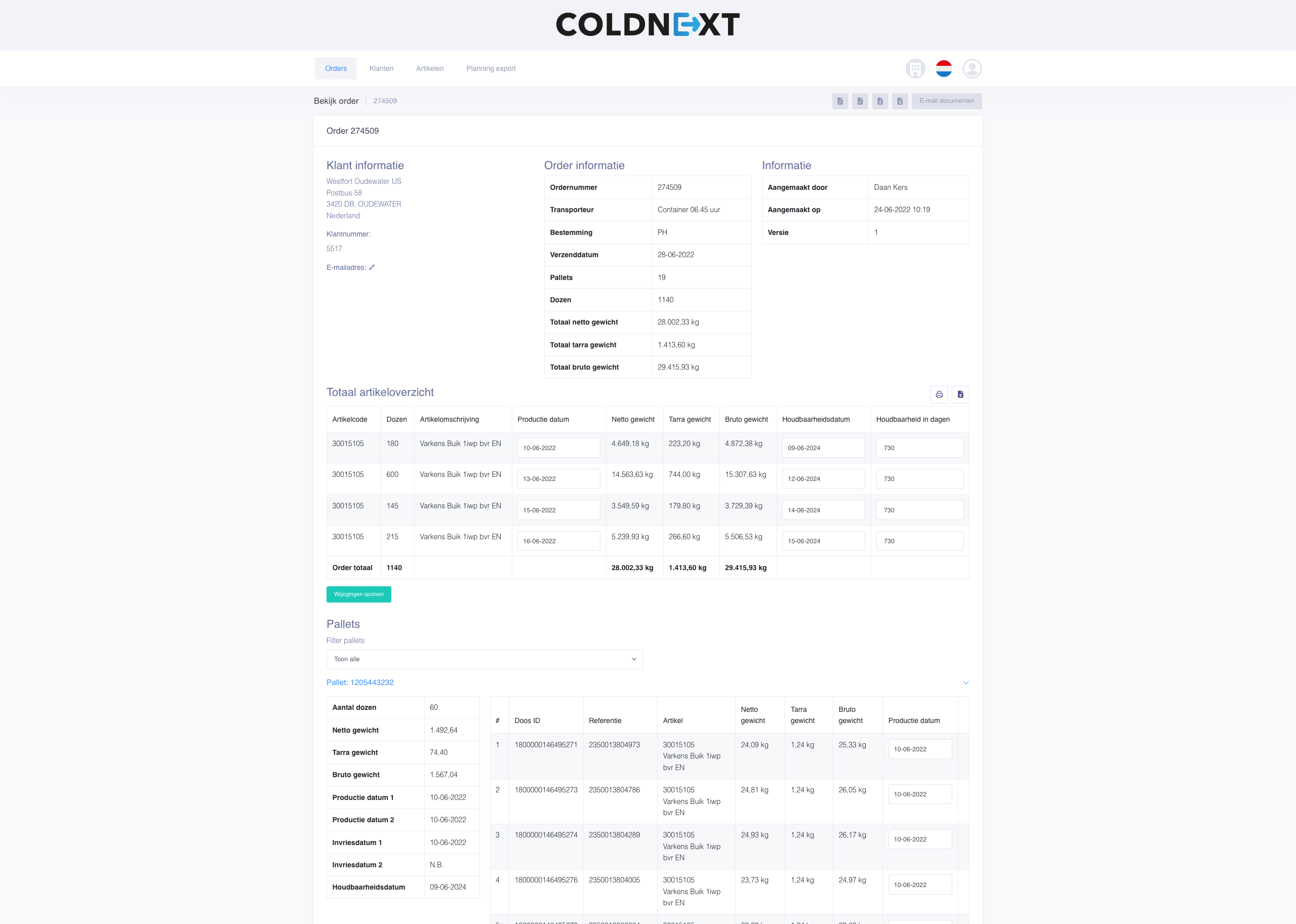 Alles draait om gemak. Het inslag- en uitslagproces wordt door Coldnext op één plek gebundeld. Denk aan dooslijsten, planning, douanepapieren, vleeskeuring, weegbruginformatie en andere documenten. De centraal opgeslagen kennis ligt nu niet meer bij individuele werknemers, maar draagt bij aan de continuïteit en schaalbaarheid van een organisatie.